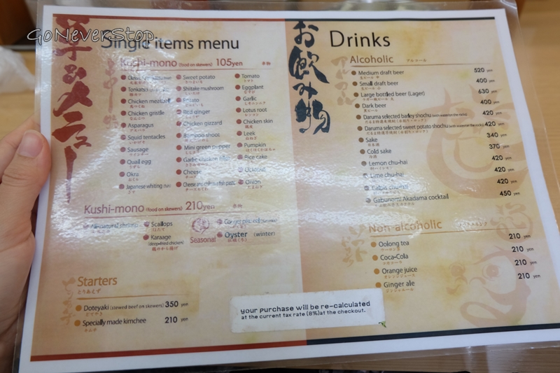 Ganso Kushikatsu Daruma สัญลักษณ์เป็นคุณลุงหน้าดุ รู้สึกว่าตอนนี้มีมาเปิดสาขาในกรุงเทพด้วย