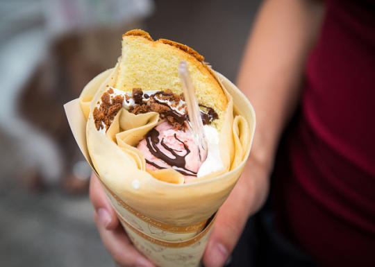 ด้วยความที่ชอบกินเครปเป็นทุนเดิม เดินผ่านร้านเครปจะพลาดได้อย่างไร...รูปข้างล่างไม่ได้ถ่ายเองนะคะ เพราะสถานการณ์จริง เริ่มของพะรุงพะรังแล้ว และมีป้ายห้ามถ่ายรูปด้วย