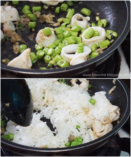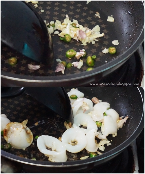 - แล้วก็เทปลาหมึกลงไปผัดด้วยเล๊ยยยย ปลาหมึกจะได้ติดรสเผ็ดๆ หอมๆ จากกระเทียม