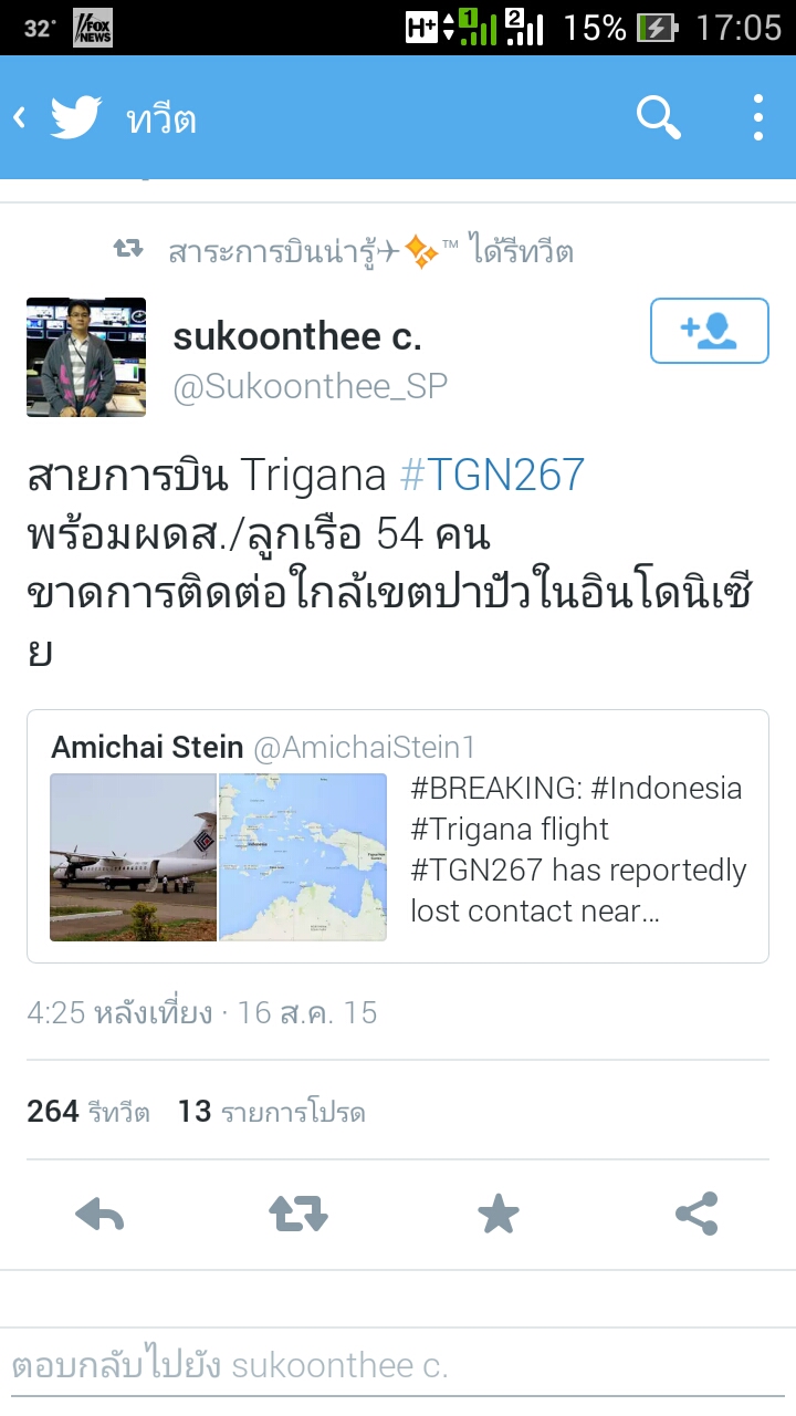 16 ก.ค.58) สำนักข่าวบีบีซีรายงานว่า เกิดเหตุเครื่องบินสัญชาติอินโดนีเซียลำหนึ่ง พร้อมด้วยผู้โดยสารและลูกเรือ 54 คนบนเครื่องหายไปในภูมิภาคปาปัว ประเทศอินโดนีเซีย โดยได้บรรทุกผู้โดยสารบนเครื่องประกอบด้ว