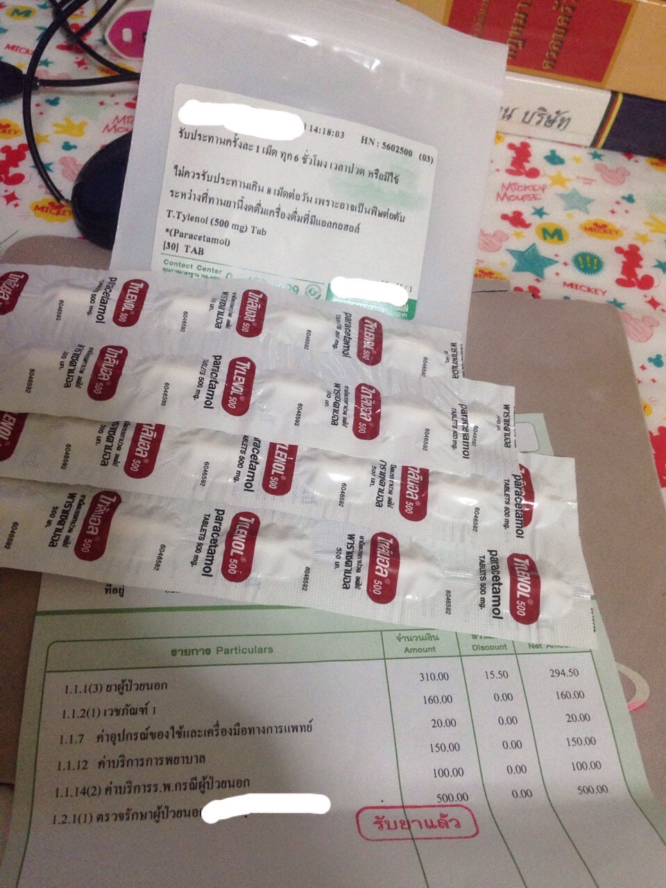 จนเรียกไปรับยา ก็เป็นไทลินอล ตอนนั้นไม่ได้ดูว่ามีกี่แผง จนกลับบ้านมาดู เป็นไทลินอล 3 แผง แผงละ10 เม็ด