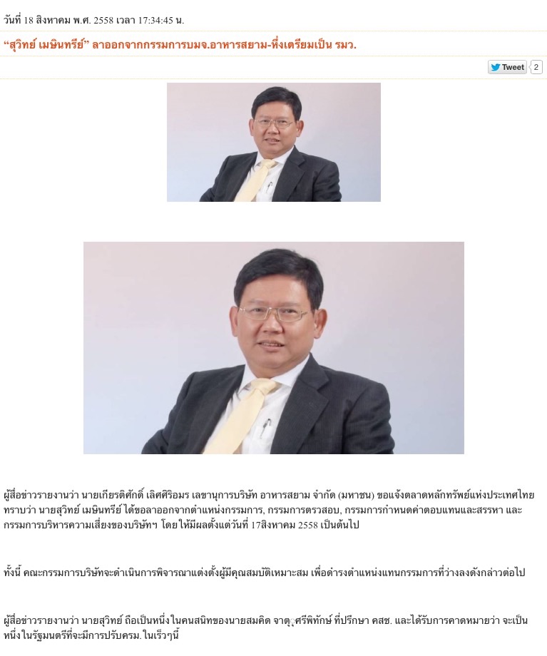 ----เหตุการณ์เลวร้ายถาโถม แถมด้วยระเบิดเมื่อคืน ยังไงก็ดีใจที่เห็น ค.ร.ม. ที่มีผู้มีความสามารถ อย่างคุณ สุวิทย์ เข้ามาน่าจะช่วยเรื่องความเชื่อมั่นได้ในระดับหนึง----