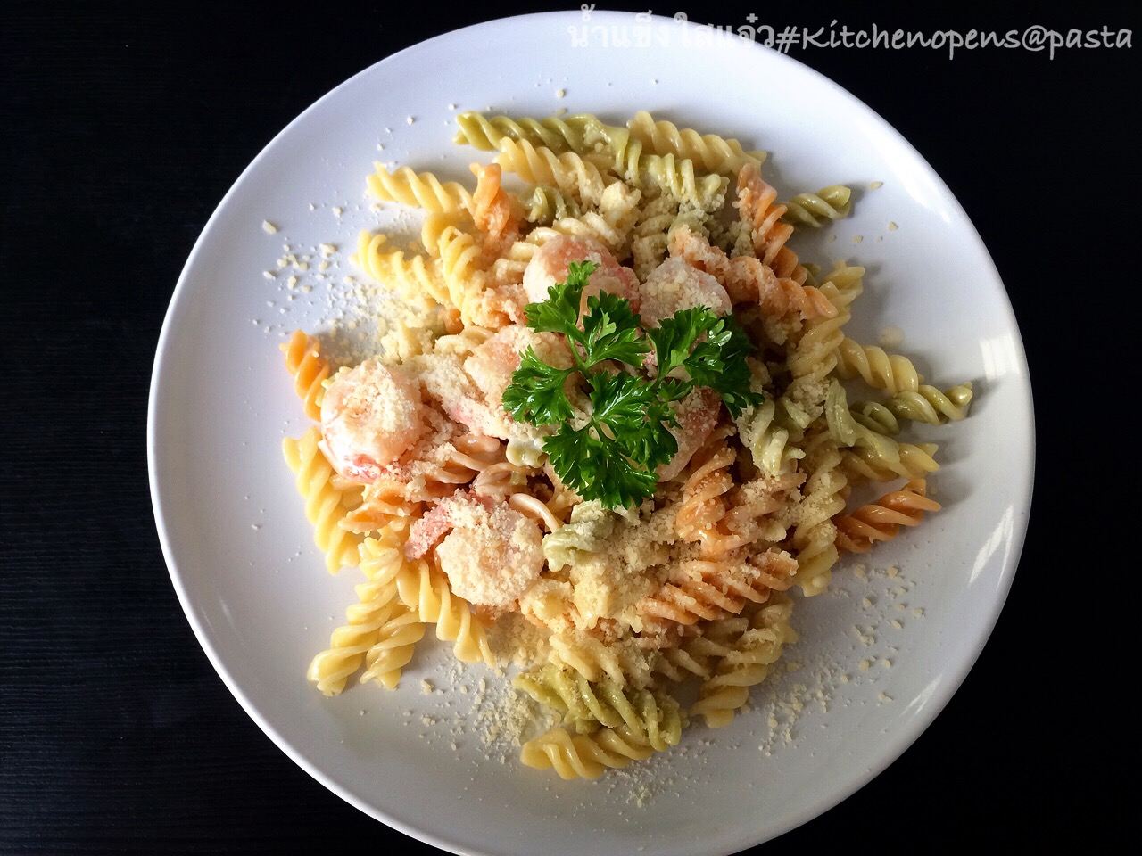 "ฟูชิลลี่สามสี ครีมซอสกุ้งสด"