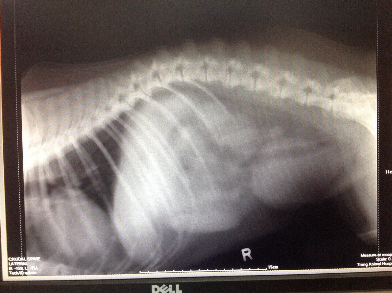 น้องหมา 9 ขวบ อยู่ๆขาหลังไม่มีแรง เหมือนไร้ความรู้สึก หมอตรวจเลือดแล้วปกติ มีรูปผล x-ray ข้างใน