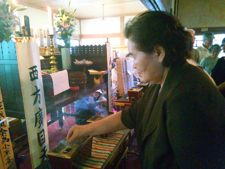 ครั้งที่สองคราวนี้ ไปในช่วงที่เรียกว่า Obon ซึ่งตรงกับวันที่ 13-16 สคของทุกปี เป็นช่วงที่ชาวญี่ปุ่นเชื่อว่าวิญญานบรรพบุรุษจะกลับมายังโลกมนุษย์และมาเยี่ยมบ้าน ชาวญี่ปุ่นไม่ได้ไปวัดกันบ่อยๆเหมือนคนไทย โดยทั่วๆไปแล้วจะไปกันปีละ 3 ครั้งเท่านั้นแหละค่ะ คือ ในเดือนมีนาคม สิงหาคม และกันยายน