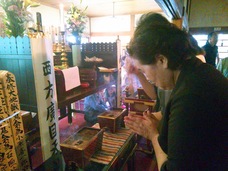 ชาวญี่ปุ่นไม่ได้ไปวัดด้วยจุดประสงค์อย่างเดียวกับคนไทย แต่จะเป็นการไปเพื่อเซ่นไหว้บรรพบุรุษเสียมากกว่า และที่ต่างจากของไทยมากๆคือเขาจะไปวัดที่บรรพบุรุษมีสุสานอยู่เท่านั้น ตระกูลเขาสังกัดลัทธิใด ณ วัดใด ก็จะต้องมีหน้าที่ต้องดูแลสุสานบรรพบุรุษของเขาที่วัดนั้นสืบไป ไม่มีการข้ามไปทำพิธีที่วัดอื่น เนื่องจากญี่ปุ่นไม่ลอยอ้ฐลงน้ำ แต่จะใส่ทั้งหมดลงผอบใหญ่ๆและฝังร่วมกับบรรพบุรุษของตระกูล บางทีถึงกับเป็นเรื่องเบาะแว้งกันในครอบครัวเมื่อคู่สามีเป็นพุทธต่างนิกาย แลัวตกลงกันไม่ได้ว่าอัฐนั้นจะฝังไว้ที่สุสานวัดใด