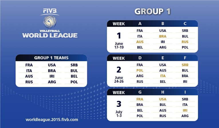 FIVB เปลี่ยนแปลงรูปแบบรายการเวิลด์ลีกใหม่คือแบ่งเป็นกลุ่มดังนี้