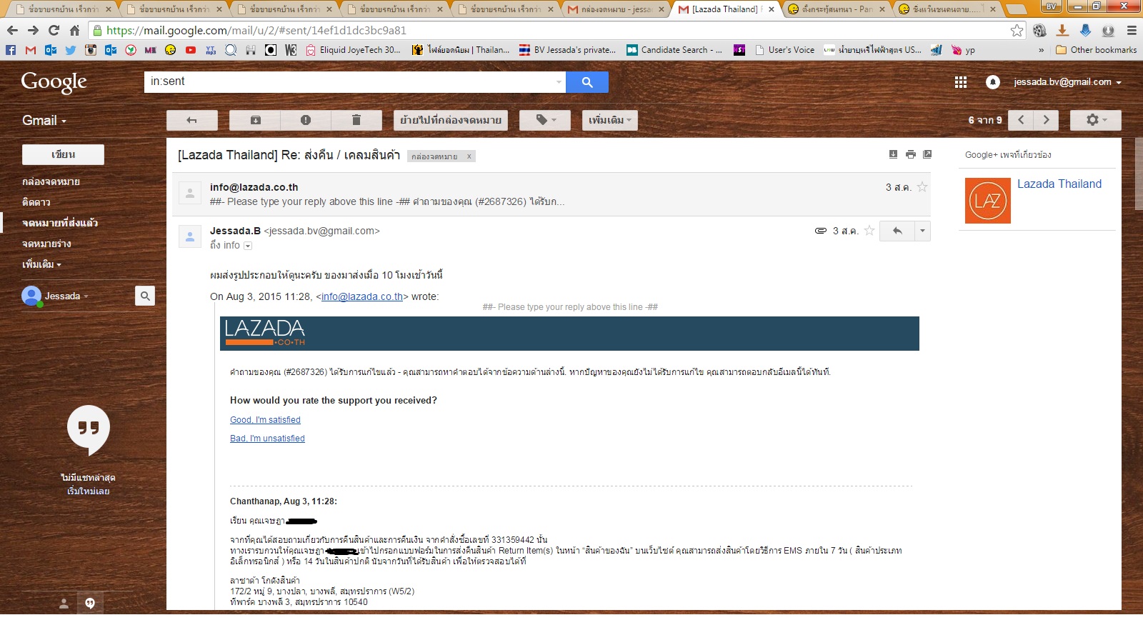 หลังจากนั้นก็ไปส่งของคืนทางลาซาด้าเลย โชคดีที่ออฟฟิตอยู่ใกล้ไปรษณีย์