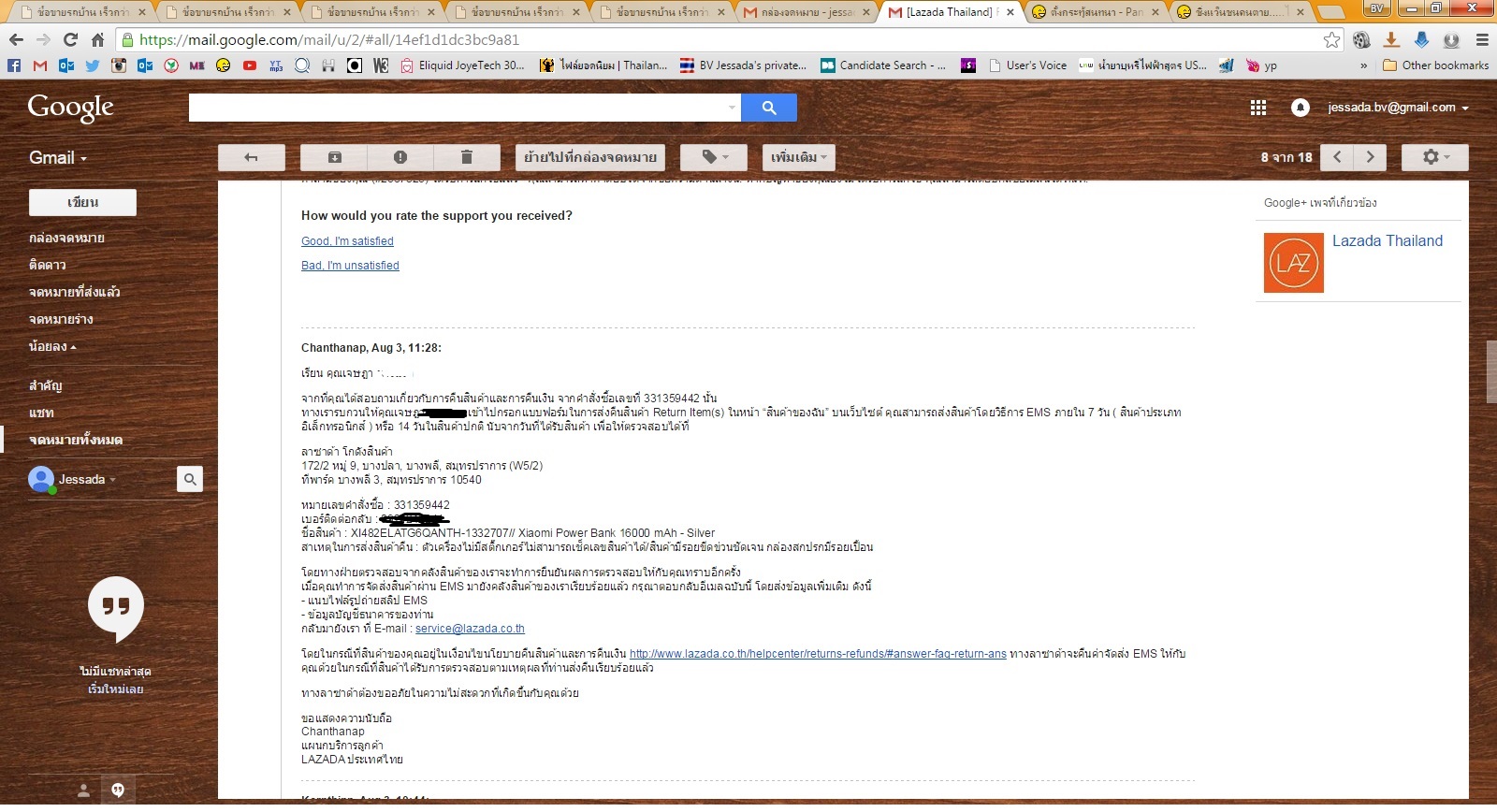 อันนี้คือเมลล์ที่ได้มาหลังจากโทรไปติดต่อ