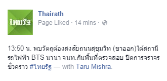 พบวัตถุต้องสงสัยที่ BTS นานาครับ [ข่าวจาก Thairath]