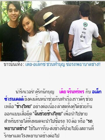 เต้ย-อเล็กซ์ชวนทำบุญ ซื้อรถพยาบาลช้าง