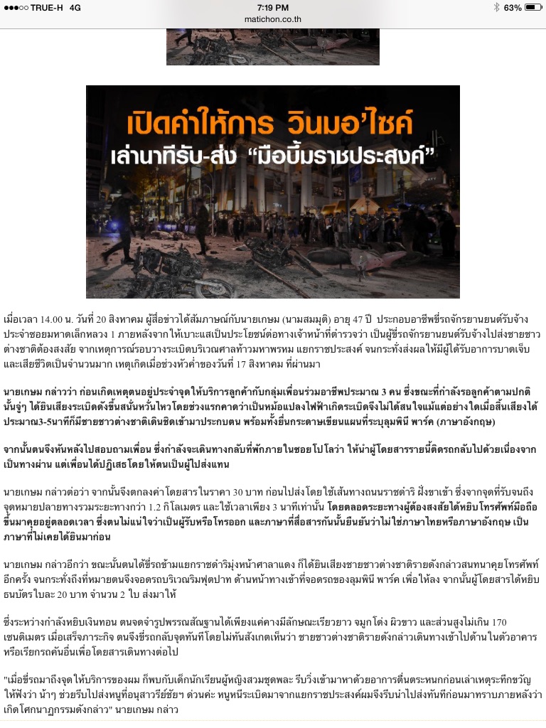 วินมอ′ไซค์ เล่านาทีรับ-ส่งมือบึ้มราชประสงค์ "มั่นใจ ไม่ได้พูดไทย-อังกฤษ"