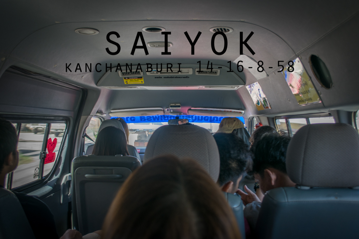 การเดินทางไปยังไทรโยคนั้นพวกเราขึ้นรถประจำทางที่เขียนว่าไปสังขละบุรีครับ โดยบอกเขาว่าลงไทรโยค ถ้าหาไม่เจอถามพี่ๆแถวนั้นก็ได้ครับ เสียค่าโดยสารคนละ 40 บาทใช้เวลาเดินทางราวๆ 1 ชั่วโมงก็มาถึงไทรโยคครับ