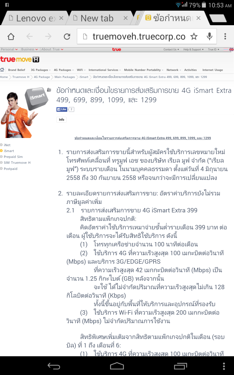 เมื่อวานวันเสาร์ไปเดินเซนฯพระราม 9 เลยเตร็ดเตร่ไปดูโปรโมชั่นของทรูที่ชั้นล่าง พบโฆษณา 4 G 399 บาท ได้เนต 1.25 GB โทร 100 นาที รู้สึกว่าพอเหมาะกับการใช้งานเลยถามเจ้าหน้าที่ว่ามีเงื่อนไขไหมเช่น ต้องเปิดเบอร์ใหม่ เจ้าหน้าที่บอกว่าไม่มี บังเอิญว่าผมต้องไปที่อื่นต่อไม่มีเวลามากพอเลยตั้งใจจะไปวันนี้(อาทิตย์)