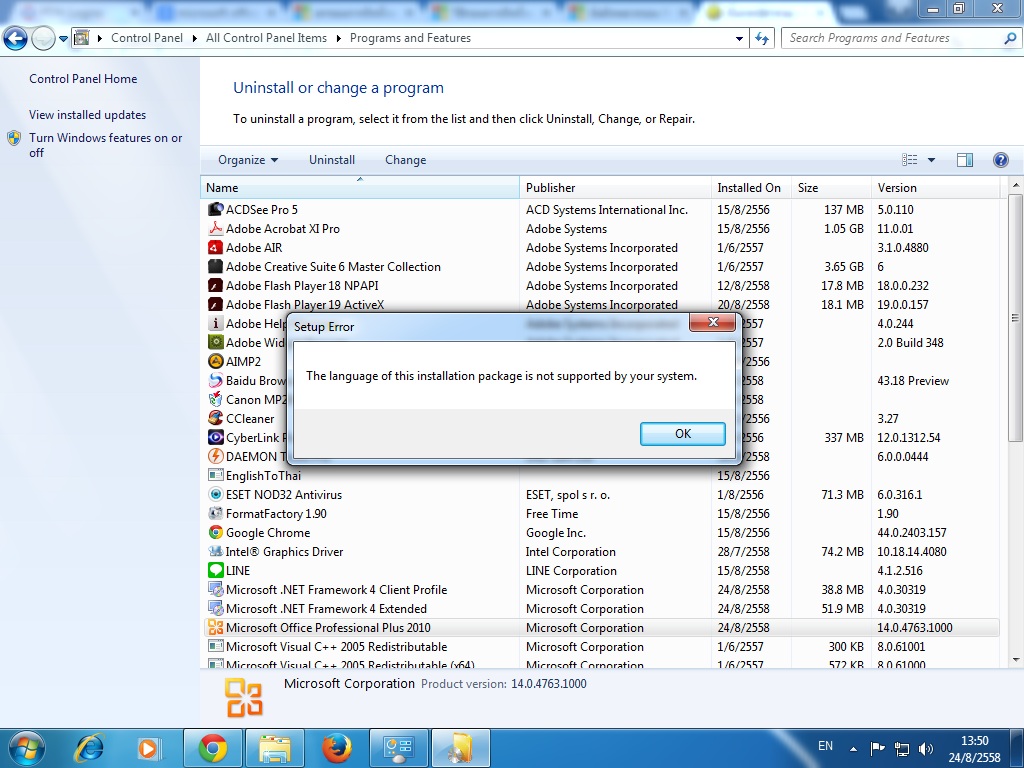 ปัญหาเกี่ยวกับ Microsoft office 2010 ถอนการติดตั้งไม่ได้ครับ