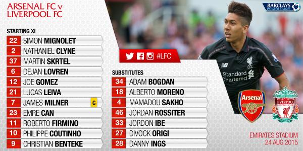 ลิเวอร์พูล ตัวจริง: มินโญเลต์, ไคลน์, สเคอร์เทล, ลอฟเรน, โกเมซ, ลูคัส, มิลเนอร์ ©, ชาน, เฟอร์มิโน่, คูตินโญ่ และเบนเตเก้