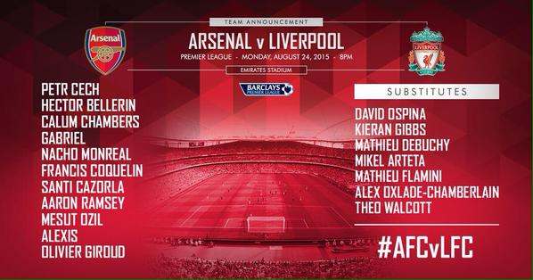 อาร์เซน่อล ตัวจริง : เช็ก, เบลเลริน, แชมเบอร์ส, กาเบรียล, มอนเรอัล, โกเกอแล็ง, กาซอร์ล่า , อเล็กซิส, โอซิล, แรมซี่ย์ และชิรูด์