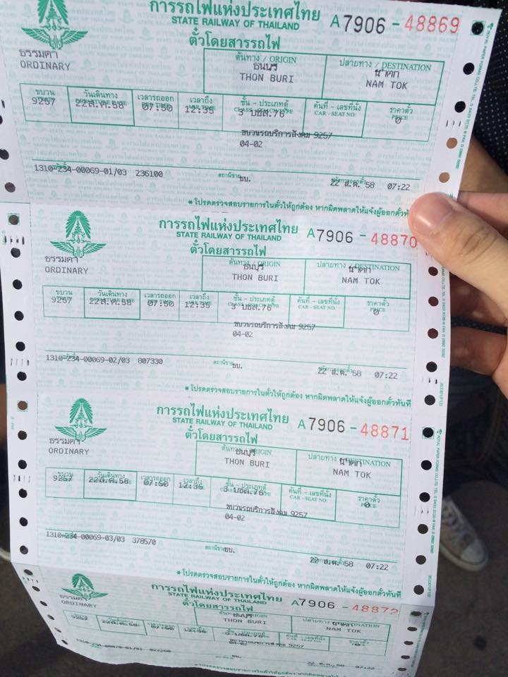 เราเริ่มออกเดินทางกันแต่เช้า เดินทางไปที่สถานีรถไฟธนบุรีเพื่อนไปซื้อตั๋ว(ตั๋วฟรีเพื่อประชาชน) เที่ยวไป ธนบุรี-น้ำตก รอบ 7:50-12:35