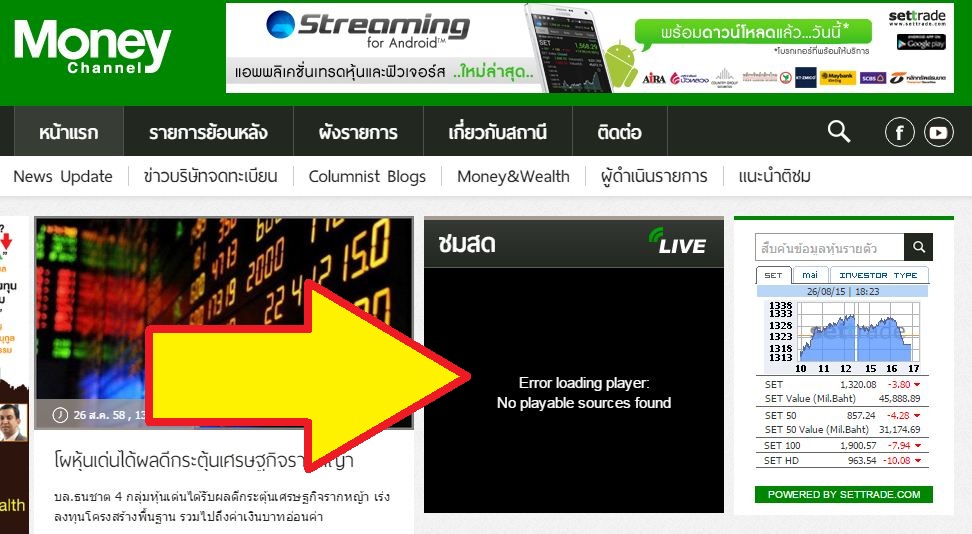 เรียนถามครับ ทำไมผมถึงดูรายการสด หน้าเวป ไม่ได้ครับ (มีรูป)