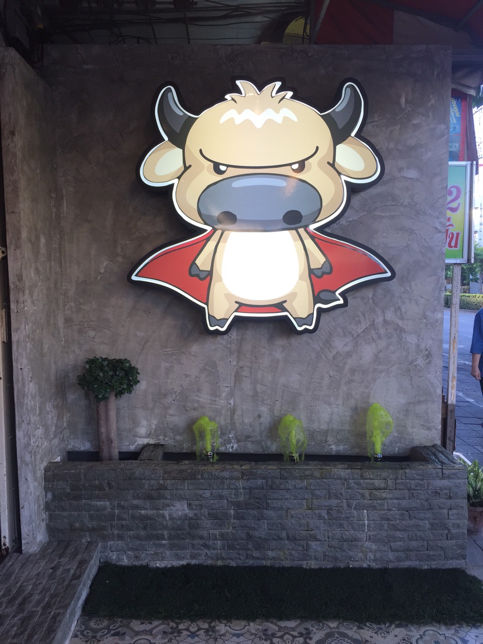 บรรยากาศในร้าน ถูกตกแต่งด้วยโทนสีดำค่ะ แต่ให้ความรู้สึกชิล เรื่อยๆ ไม่รีบร้อนค่ะ มีรูปซุปเปอร์ฮีโร่แปะอยู่เล็กน้อย