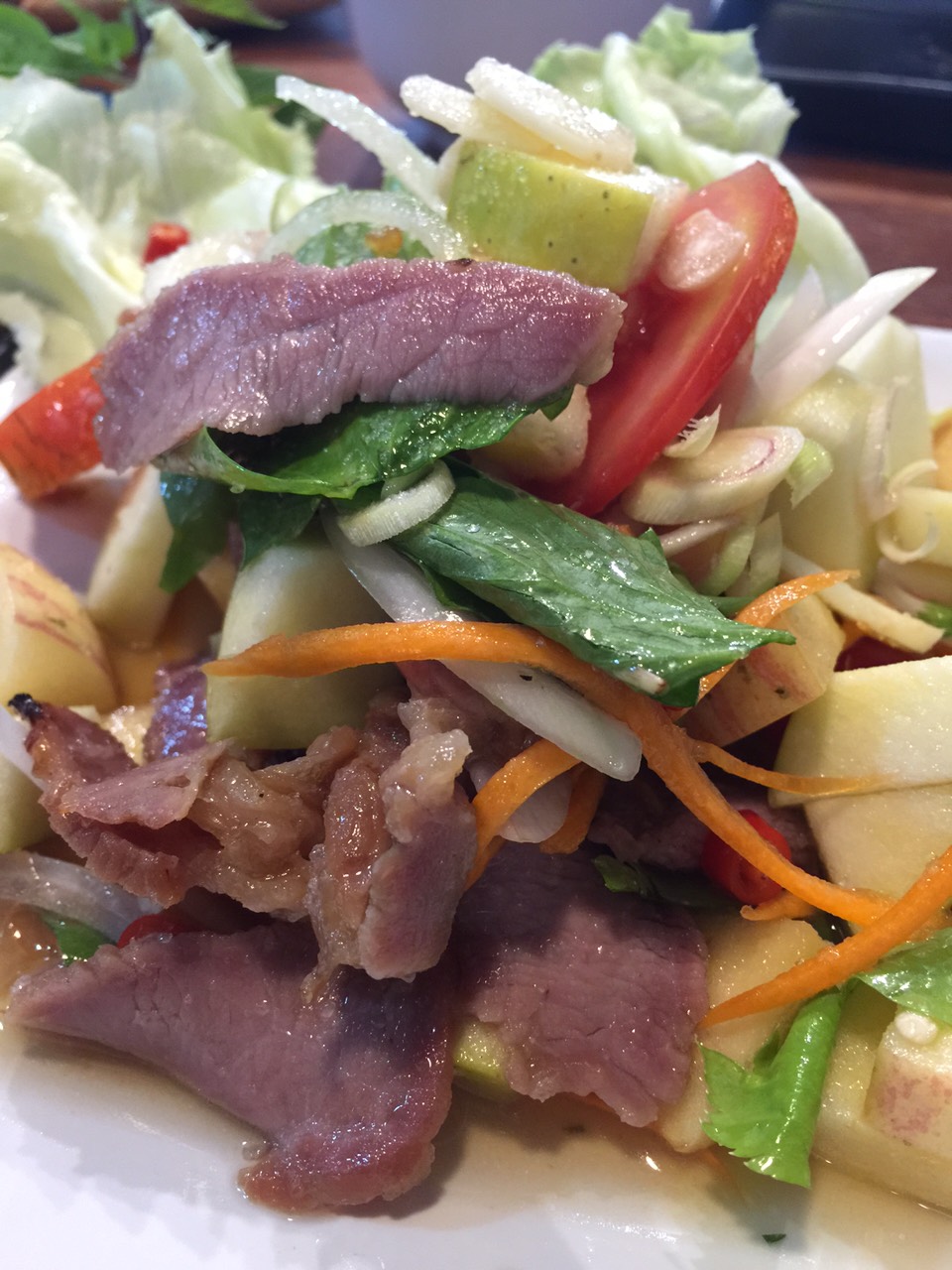 หนึ่งในเมนูแนะนำคือ ยำคอหมูย่างแอ๊ปเปิ้ล (ไม่แน่ใจชื่อจริงๆค่ะ)
