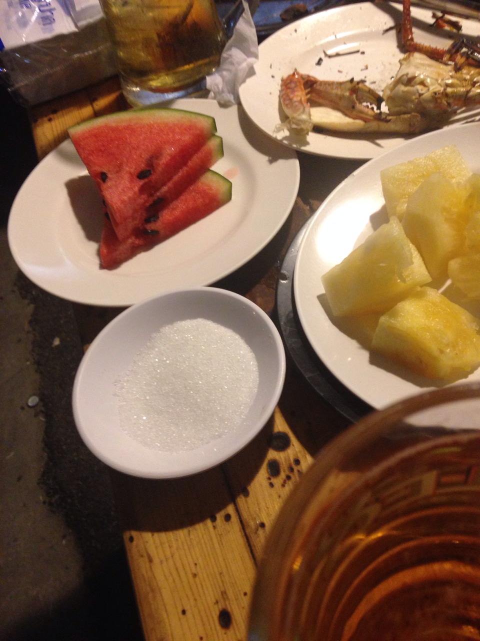 9.ผลไม้ มี2-3 อย่าง แต่สังเกตุว่าผลไม้ไม่ค่อยพร่อง เพราะคนมาทานเบียร์เป็นหลัก แต่สับประรด ช่วยได้มาก ตัดเวลามึนเบียร์ได้พอสมควร
