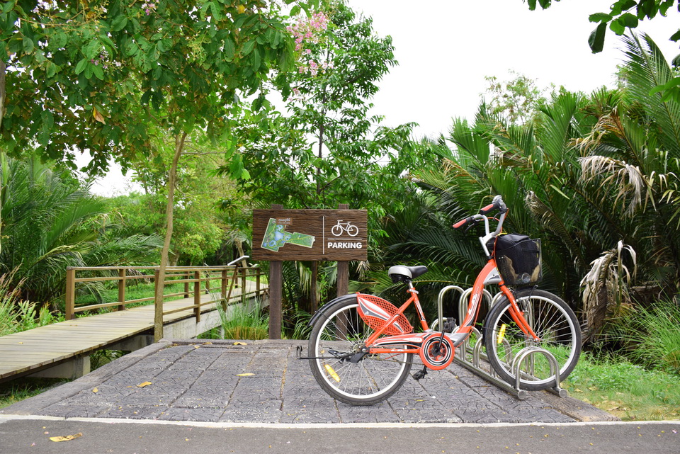 เราขี่มอเตอร์ไซต์จากบ้าน ไปจอดในวัดบางน้ำผึ้งใน จอดติดกับกำแพงร้านเช่าจักรยานเลยค่ะ สรุปก็เลยได้จักรยานเช่ามา โดยเจ้าหน้าที่ไม่ได้ขอบัตรประชาชนเอาไว้เลยสักนิด (หุ หุ ก็รถเราจอดอยู่ข้างร้านเขาขนาดนั้นอ่ะนะ) แต่เจ้าหน้าที่ก็อัธยาศัยดีมากค่ะ ให้ข้อมูลเส้นทางเป็นอย่างดี