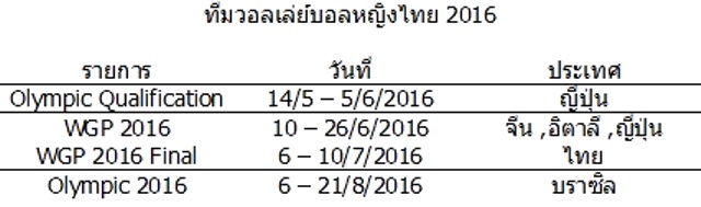 ดูตารางการแข่งขัน ทีมชาติวอลเล่ย์หญิงไทย ในปี 2016