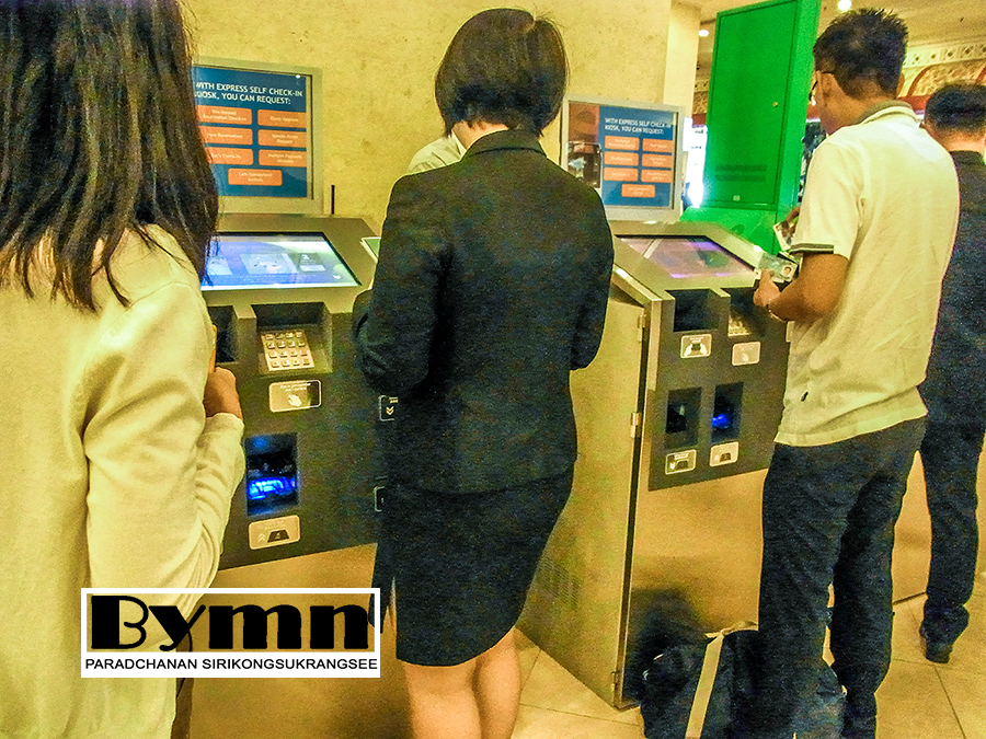 เช็คอินได้ที่เครื่อง Kios นะคะ จะมีพนักงานต้อนรับช่วยเหลืออยู่ข้างๆตู้คะ