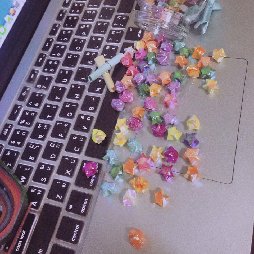 จขกท.คิดว่าวันเกิดแฟนปีนี้จะให้อะไรแฟนดี ปกติถ้าเป็นวันสำคัญก็จะซื้อของให้กัน แต่ปีนี้คิดว่าอยากจะทำอะไรที่เป็นงานฝีมือ ที่เราทำมันออกมาด้วยใจ เลยตัดสินใจพับดาวกระดาษค่ะ ซื้อกระดาษมาพับเองค่ะ ไม่ได้ซื้อแบบที่เขาพับแล้วมาใส่โหล ไม่รู้ว่าจะเฉยไปไหม แต่เราว่ามันน่ารักดีนะค่ะ กว่าจะพับได้แต่ละดวงต้องตัดเล็บนิ้ใโป้งกับนิ้วชี้เลยค่ะ TT มันอาจจะไม่ได้มีราคาอะไร แต่มันมีคุณค่าทางใจค่ะ เพื่อนๆคนไหนกำลังคิดอยู่ว่าจะหาของขวัญอะไรให้แฟนดี ? ดาวกระดาษเป็นอีกหนึ่งทางเลือก ที่จะทำมันให้แฟนคุณค่ะ อีกอย่างประหยัดด้วยค่ะ ><
