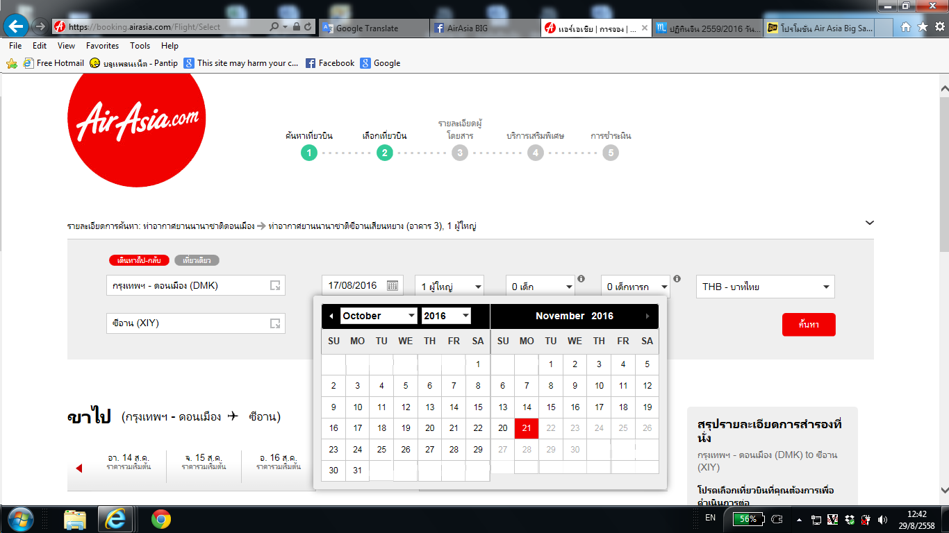 อีกอย่าง ก่อนหน้านี้ จองได้แค่ สิงหาคม 59 แต่นี่ มีช่องถึง 21 พย. 59 แล้ว แต่ราคายังไม่ออก