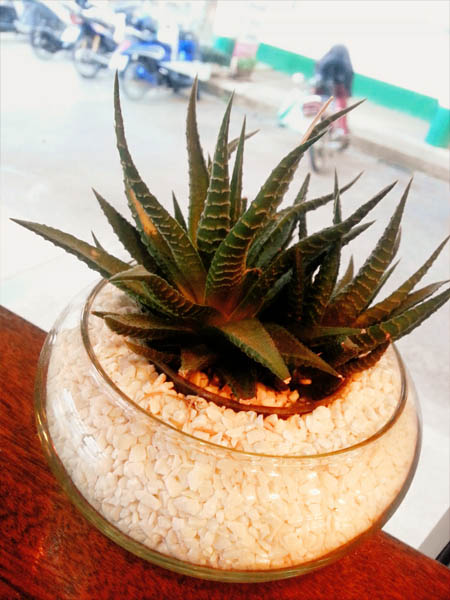 มีต้นไม้เล็กๆสีเขียว ไว้ตัดกับโทนสีน้ำตาลทำให้ดูแล้วอบอุ่น สบายตา