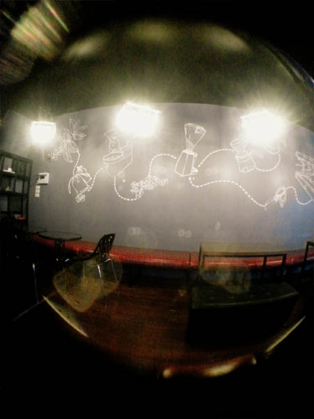 ที่ฝนังด้านข้างก็มีการวาดรูปที่มาของกาแฟด้วย สวยงาม
