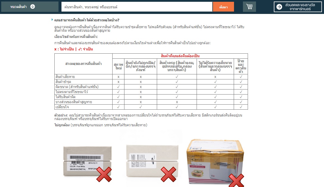 ซึ่ง นโยบายการคืนสินค้าของลาซาด้าในเว็บไซต์ได้อธิบายไว้ชัดเจน