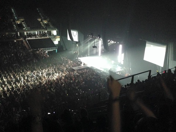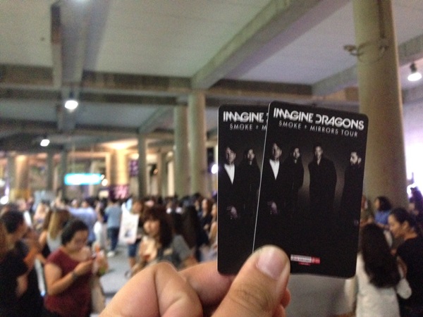 เมื่อวานเราไปถึง อิมแพคฯ ตอน 19.30 บรรยากาศหน้างานคึกคักมาก โดยเฉพาะสาวๆนี่มาดูคอนเสิร์ตวงนี้กันเพียบ โดยก่อนเริ่มก็มีแวะไปซื้อของบ้าง ยืนต่อคิวถ่ายรูปกับสแตนดิ้งบ้างซึ่งแถวยาวสึด (เรามาถึงจุดที่ต้องยืนต่อแถวเป็นตัวหนอนยาวๆเพื่อถ่ายรูปกับสแตนดิ้งแล้วนะฮะ) เราโดนเสื้อลายนกสีดำไปตัว 1,000 บาท ถือว่าถูกกว่าที่สิงคโปร์ ตอนแรกจะเอาลายที่เขียนว่า IMAGINE แต่ไม่มีไซส์เลย อดแ-ก ไป