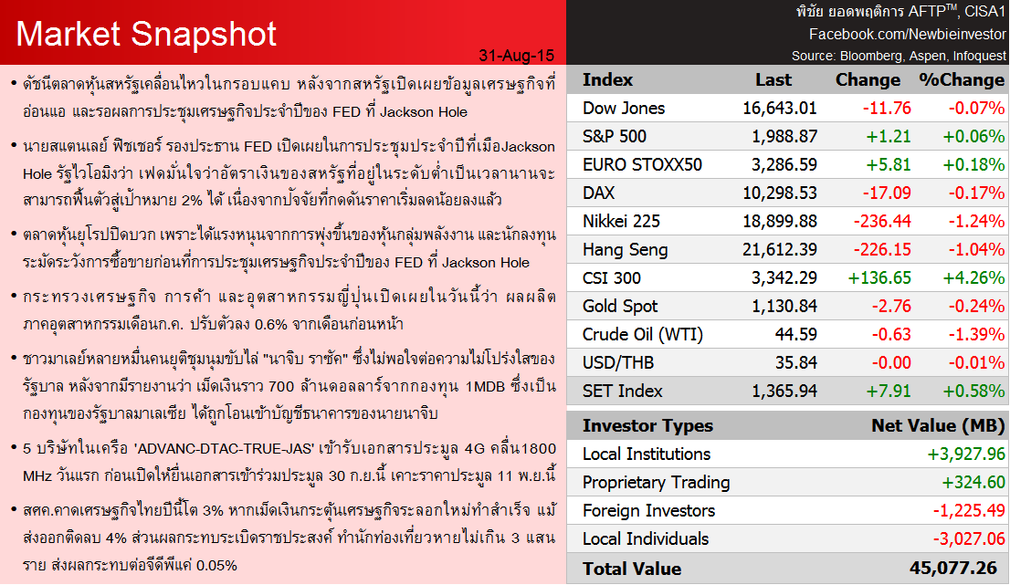 Market Snapshot on 31 Aug 2015