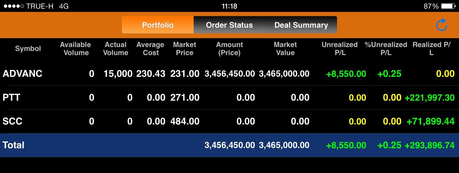 เช้านี้เอง ADVANC ขึ้น 2% ผมเบื่อมันมากขายทิ้งเลย เห็น PTT แดง เลย ทยอยรับคืน จะเอาปันผล