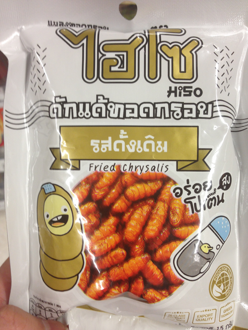 สังเกตได้ว่า อันนี้จะเป็นรสดั้งเดิม (เห็นมีขายแค่ 2 อันนี้) .. คาดว่าอนาคต คงจะมีรสอื่นๆ และแมงอื่นๆ ตามมาอีกเป็นขบวนแน่นอน