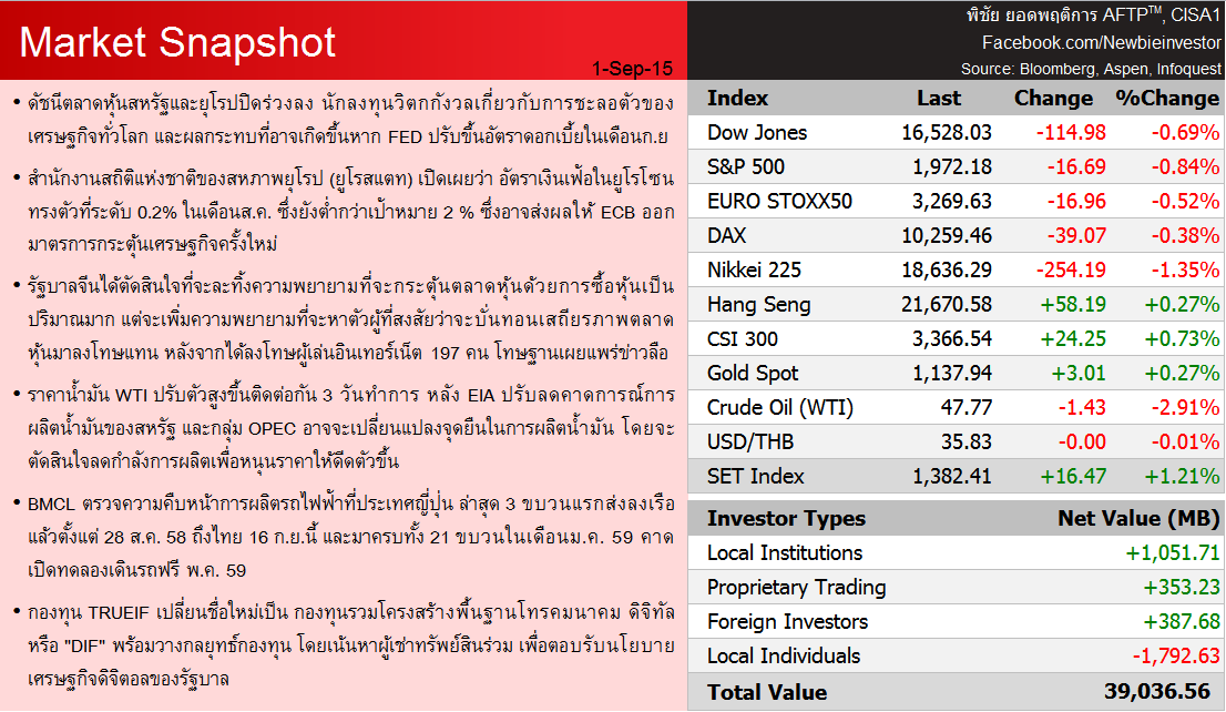 Market Snapshot on 1 Sep 2015