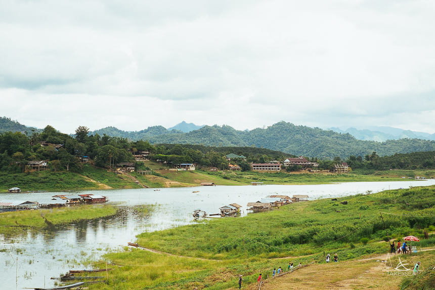 ออกเดินทางตั้งแต่เช้าตรู่โดยรถตู้จากอนุสาวรีย์ฯ ถึงสังขละประมาณใกล้ๆเที่ยง ด้วยความที่เป็นมนุษย์ออฟฟิศมีเวลาเที่ยวแค่เสาร์-อาทิตย์ เราเลยเช่ามอเตอร์ไซค์ออกเที่ยวกันตอนพระอาทิตย์ส่องตรงหัวเลย แต่คราวซวยอยู่ตรงที่ ตอนบ่ายๆ ฝนตกจ้าาาาา