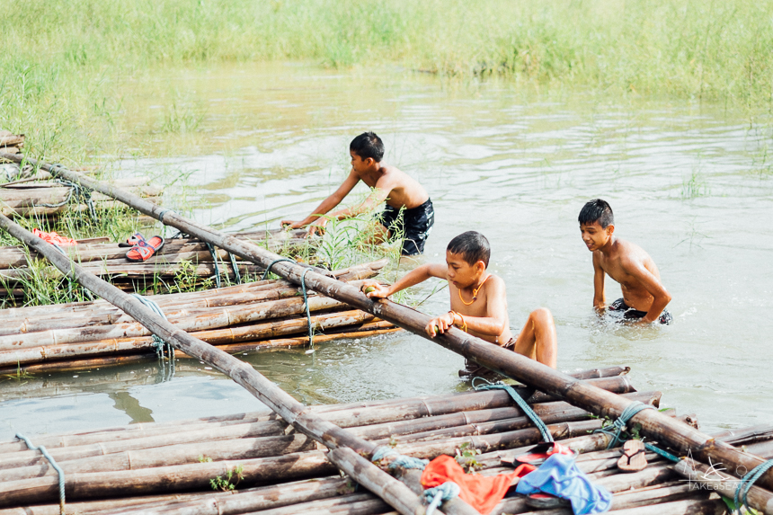 ด้านล่างของสะพานไม้มีสะพานไม้ไผ่ข้ามแม่น้ำอีกที อากาศร้อนน่าโดดน้ำตามเด็กๆมากกก