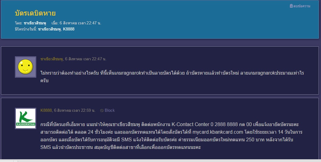 จากตอนแรกบัตรเดบิตผมหายผมเลยแจ้งไป ทางคุณ K8888 ทีนี้ผมเห็นว่ามีลายเกมที่ผมเล่นด้วยผมเลยถามรายละเอียดก็ได้ตามรูป