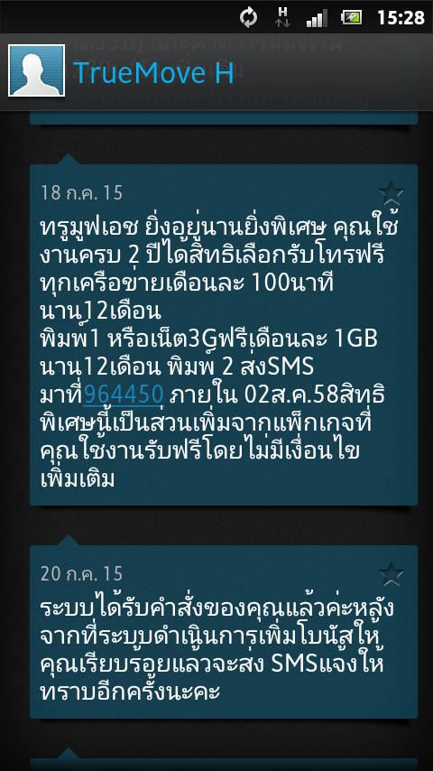 วันที่ 18 ก.ค. 58 ผมได้รับ SMS นี้ของ True