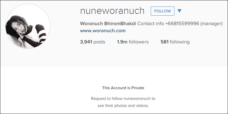 นุ่น วรนุช ปิด Instagram เป็นส่วนตัวแล้วจ้า