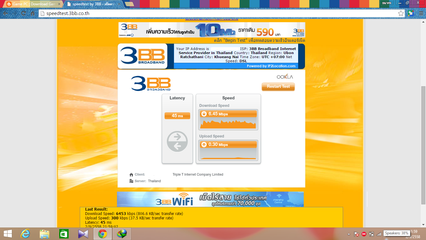 ทำไมตอนนี้ เน็ต 3BB เข้าเว็ปและโหลดเว็ปนอกช้ามากเลย เช็คความเร็ว Ping Download 0.65 Mb Upload 0.45 Mb
