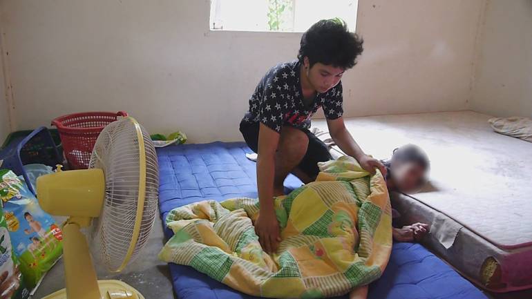 น้องออม แสวงรักษ์ อายุ 14 ปี น้องสาวที่สภาพร่างกายผอมแห้งจนหนังแทบติดกระดูก แขนและขาลีบ ยืนและนั่งลำบาก ช่วยเหลือตัวเองไม่ได้ ต้องคอยดูแลป้อนข้าวป้อนน้ำ นอนอยู่บนที่นอนเก่าๆ ภายในบ้านปูนหลังเล็กชั้นเดียวสภาพเก่า หลังคารั่ว หน้าต่างผุพัง เป็นที่น่าเวทนายิ่งนัก