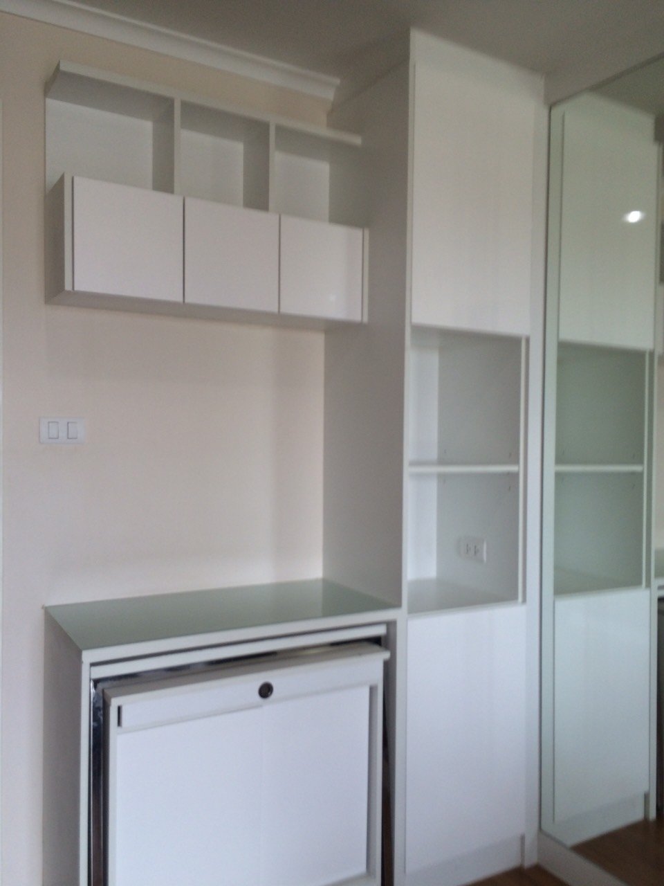 มีเฟอร์นิเจอร์ built-in อย่างดี เก็บของได้เยอะ (ชั้นวางของ ชั้นวางรองเท้า ชุดครัวพร้อมอ่างล้างชาม ตู้เก็บของ ตู้เสื้อผ้า ที่วางโทรทัศน์ ผ้าม่าน เตียง โซฟา โต๊ะทำงาน เก้าอี้ โต๊ะรับประทานอาหาร+เก้าอี้ เครื่องใช้ไฟฟ้า มีโทรทัศน์ ตู้เย็น เตาไมโครเวฟ เครื่องทำน้ำอุ่น)