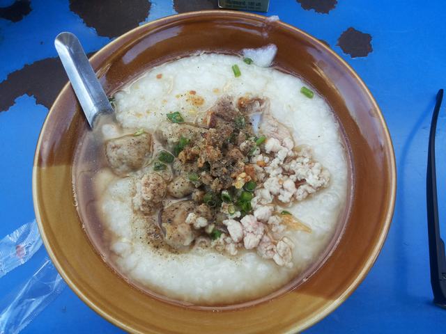 คือปกติ วันเสาร์ ผม มันจะออกไปเที่ยว ตามประสาผมครับ บางที่ก็ขับรถ บางที่ก็ขี่มอเตอร์ไซต์ไป ที่นี่จุดแวะพัก นัดเจอที่ต้องออกไปทางนครนายก คงไม่พ้น ปั๊มน้ำมัน เติมน้ำมันเสร็จก็หาอะไรเติมท้อง ผมไปเจอป้ายที่ติดตรงตู้แช่เครื่องดื่มว่า มีโจ๊กหมูร้อนๆขายค่ะ อะไรว่ะผมคิด ไหนลองดูหน่อยดิ ลองสั่งดู เห็นน้องเค้าตักจากในโอ่งต้ม ผมว่าบางทีมันเหมือนไหเหล้าในหนังจีน นะ อยู่ข้างตู้ซาลาเปา แล้วเค้าก็ฉีกซองหมู ใส่มาให้ จ่ายตังแบบ งงนิดๆถ้วยละ25บาท ไปลองกินดูดิ รถชาติ คือโจ๊กเด็กเลยครับ ขิงเหมือนบดผสมมาในเนื้อโจ๊กเลย หมูก็ตามสภาพ รสชาด ดีกว่าแบบเวฟ