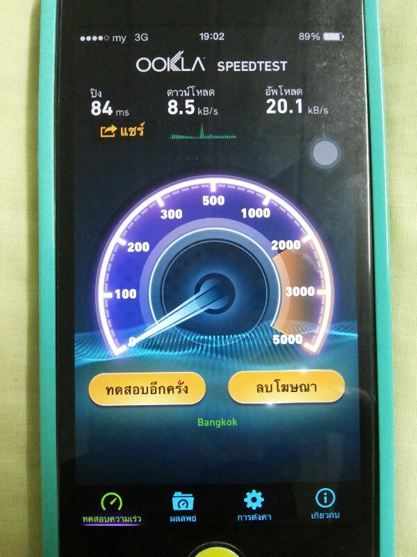 อีกแป๊บนึงเล่นเน็ตไม่ได้แล้ว คือแบบโทรศัพท์ยังขึ้น 3g อยู่ แต่เวลาเปิดเวป หรือเข้า facebook มันขึ้นว่ามีปัญหาเครือข่าย ไลน์ก็ขึ้นว่าไม่มีการเชื่อมต่อเครือข่าย ก็เลยเข้า testspeed อีกทีหนึ่ง