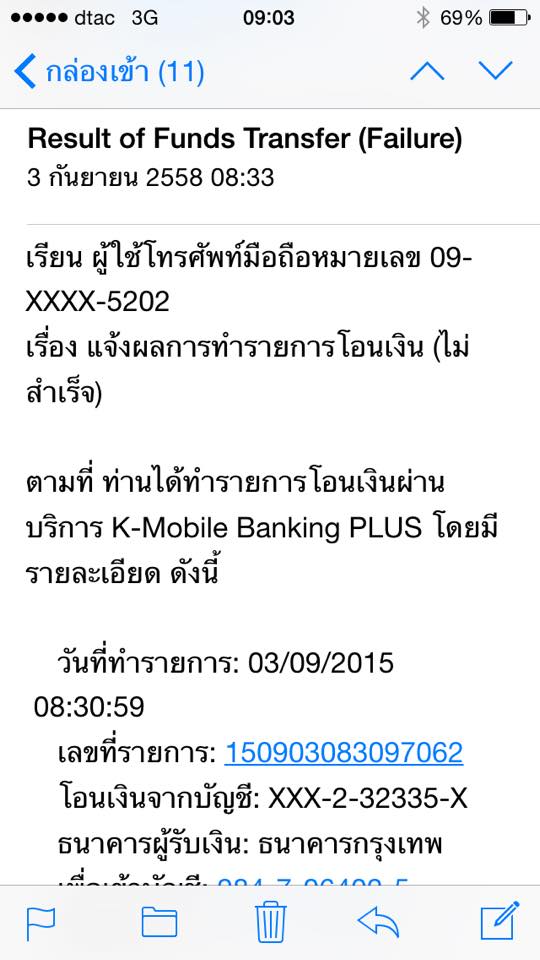 k-mobile ระบบแย่มากค่ะ โอนเงินไป 1 ครั้ง มันขึ้นว่าไม่สำเร็จ เลยโอนอีกครั้ง แต่กลับตัดเงินสองครั้ง